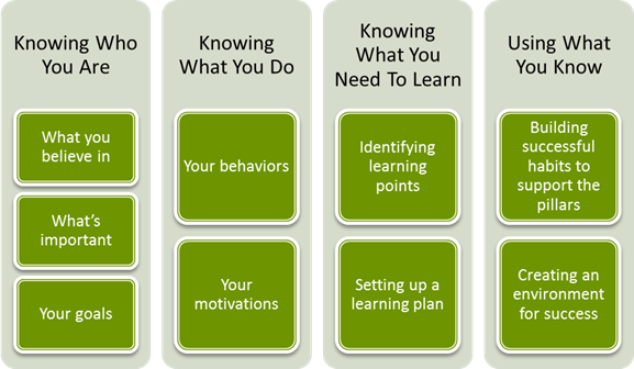 Self-leaders share several key characteristics, which we have organized in a model of four pillars.